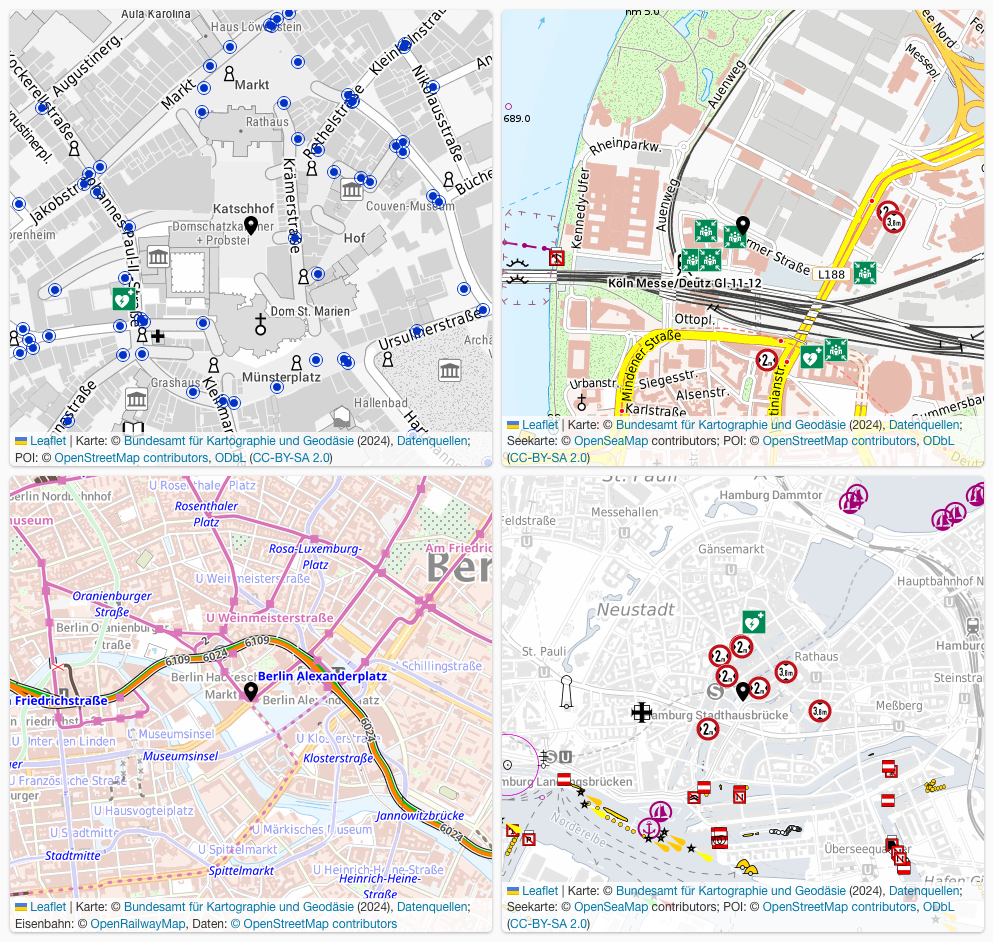 Die Points of Interest werden jeweils im 500-Meter-Radius um den Ereignisort oder die vordefinierte Adresse dargestellt und stehen somit in der dynamischen und statischen Karte zur Verfügung.