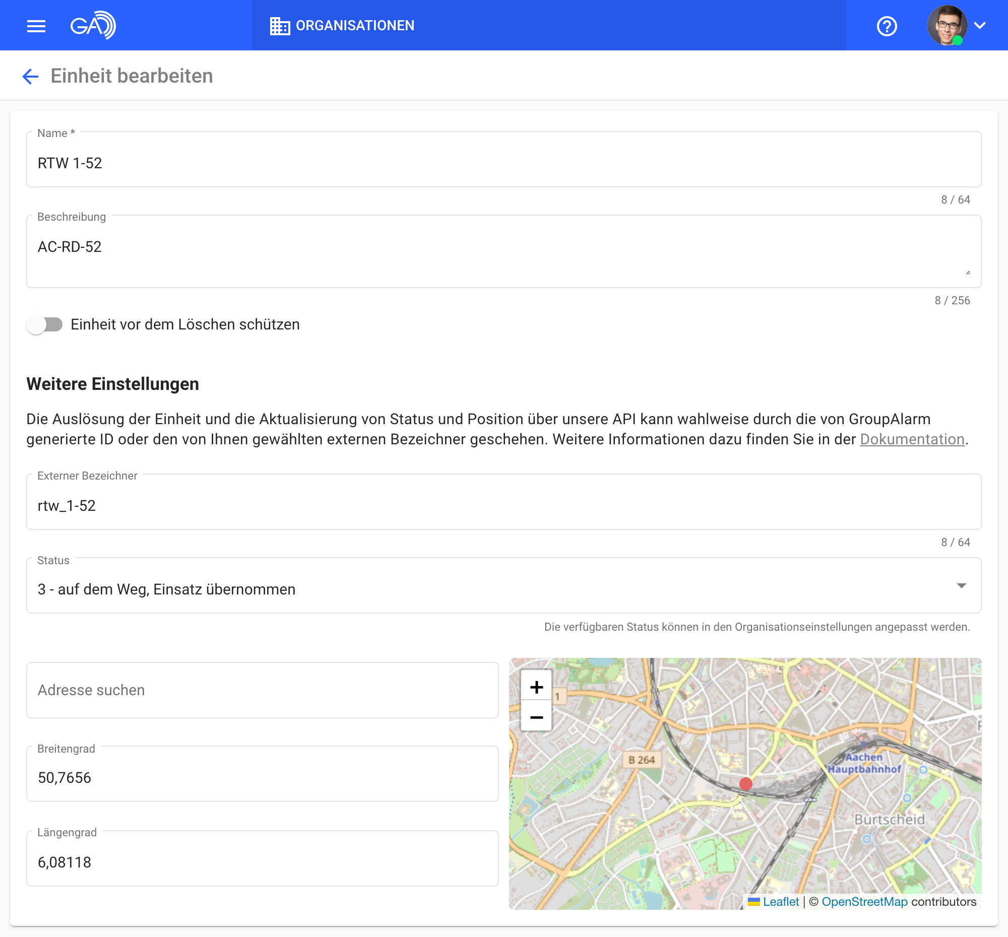 Die Einheiten in GroupAlarm haben umfangreiche Funktionen erhalten, mit denen Sie Fahrzeuge, Fußeinheiten und mehr abbilden können. Zudem ist nun die Alarmierung einer Einheit mit einem frei wählbaren Bezeichner möglich.