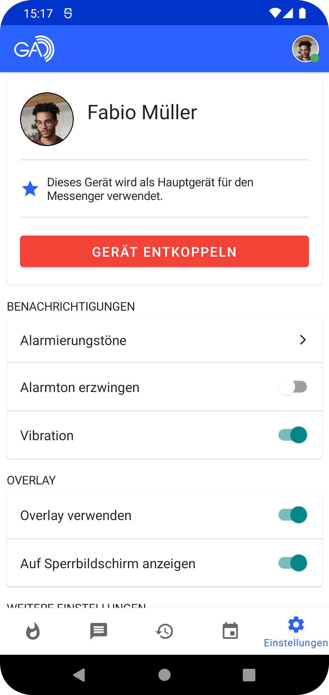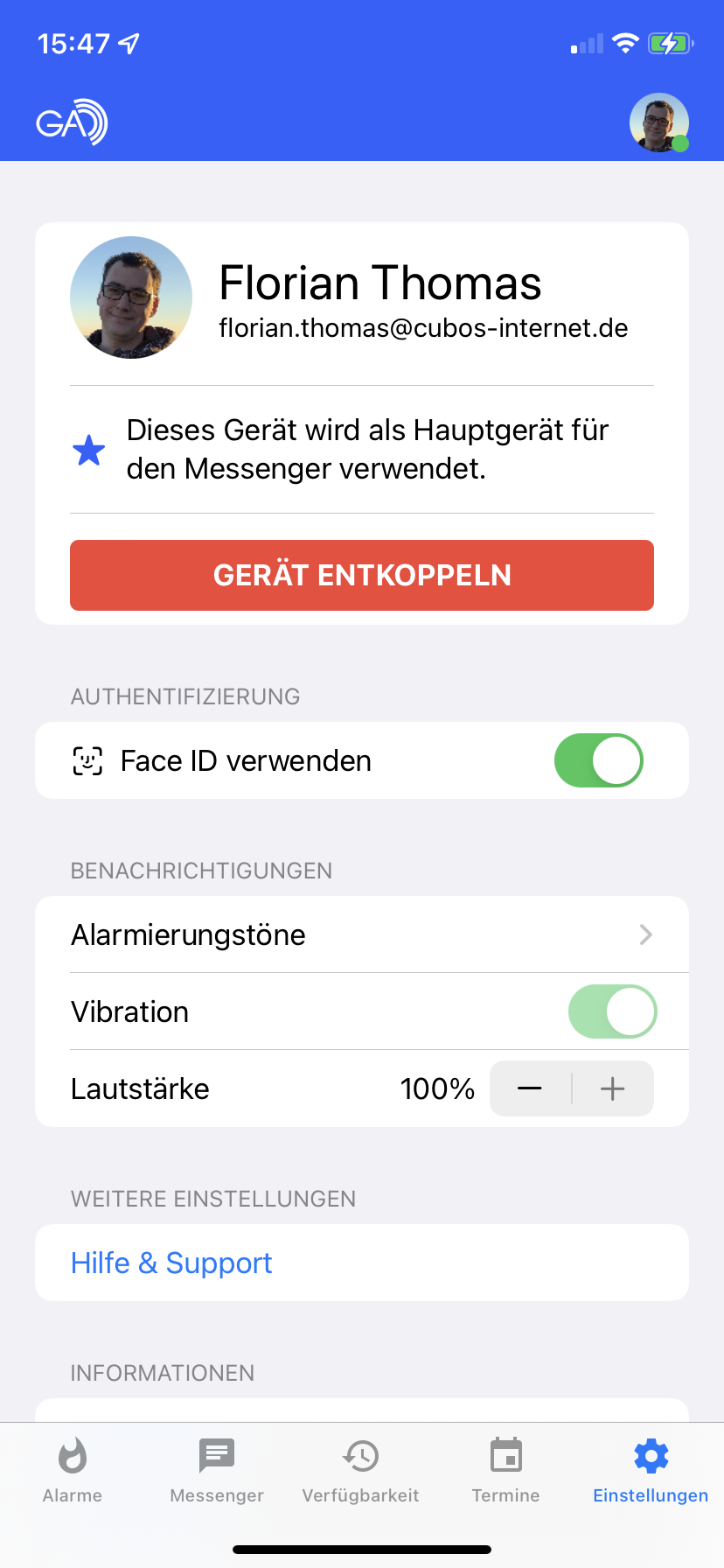 das Hauptgerät direkt in den Einstellungen Ihrer App oder in der Übersicht der Erreichbarkeiten in der Web-App