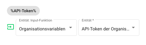 Innerhalb der Flows stehen Ihnen bei der Konfiguration einer Funktion nun globale Organisationsvariablen zur Verfügung, die zur Laufzeit eines getriggerten Flows gesetzt werden. Aktuell können Sie aus der Organisations-ID, Flow-ID und dem API-Token der jeweiligen Organisation wählen.