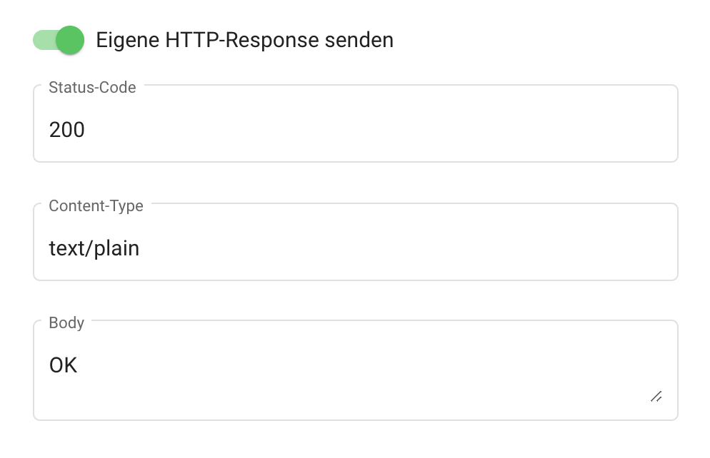 Sollte bei der Anbindung Ihrer eigenen Schnittstelle eine benutzerdefinierte HTTP-Response erwartet werden, so können Sie innerhalb des HTTP-Triggers eines Flows nun den Status-Code, Content-Type und Reponse-Body konfigurieren.