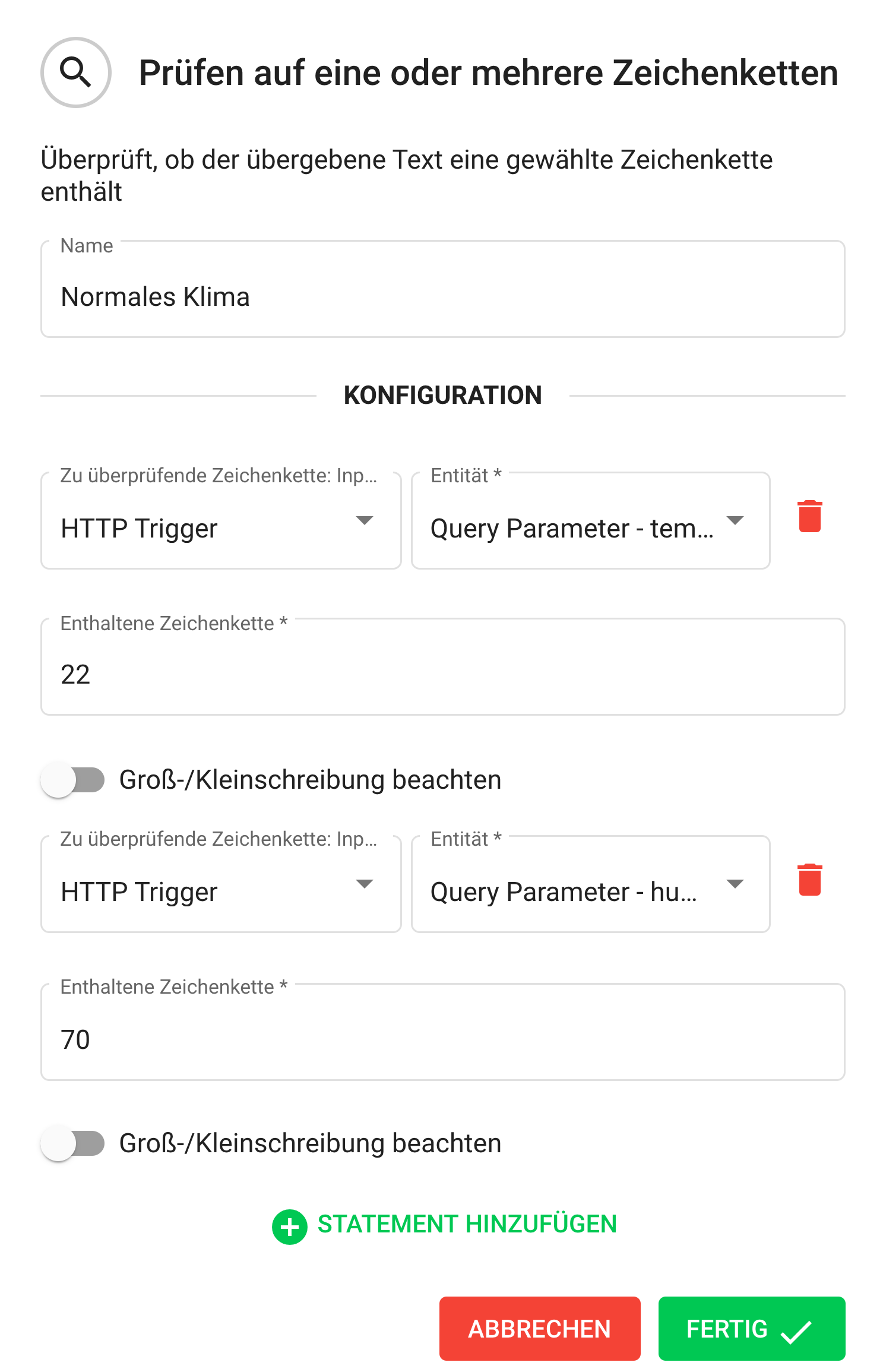 In der neuen Version der GroupAlarm-Flows ist es möglich mehrere Zeichenketten in einer Funktion zu überprüfen. Dabei muss nur eine der angegebenen Zeichenketten gefunden werden, da eine ODER-Verknüfung verwendet wird.