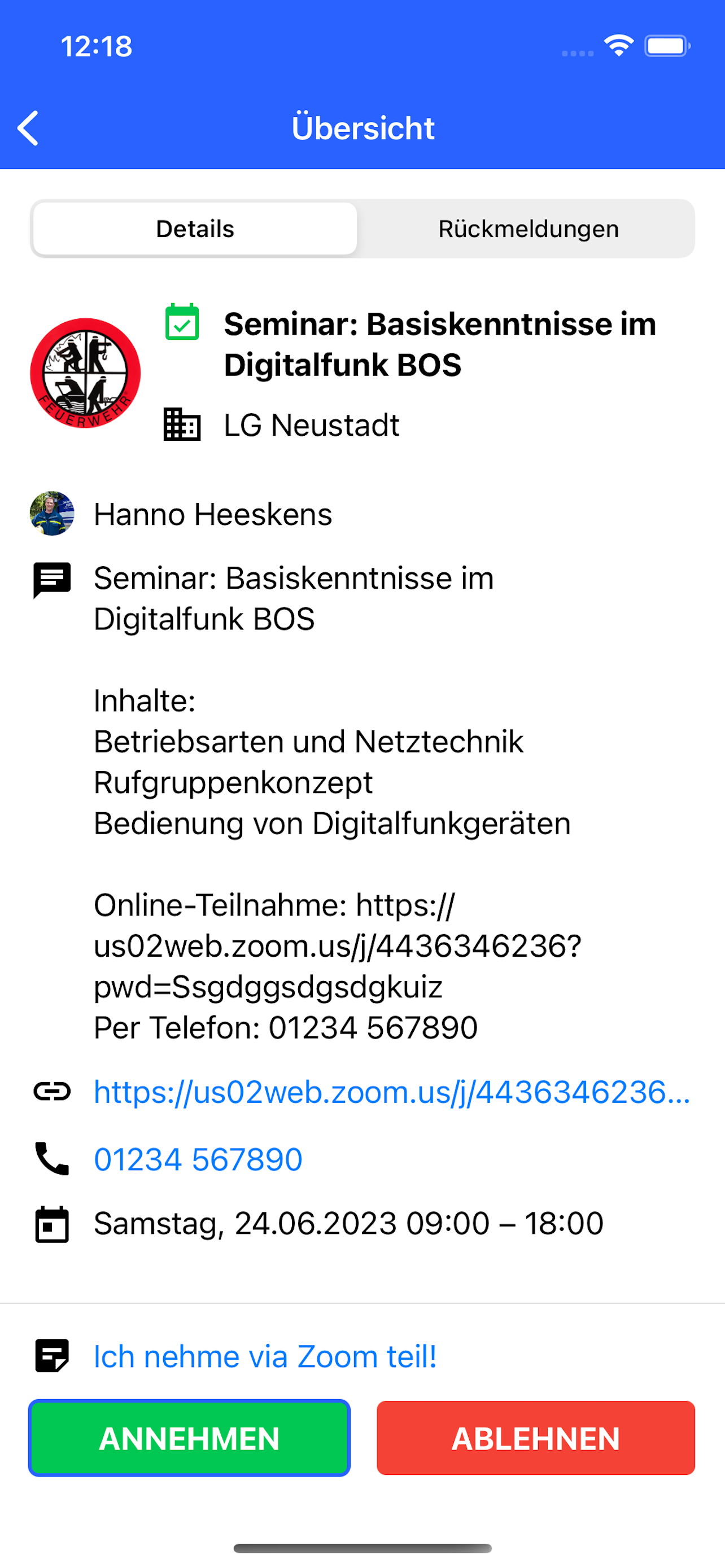 - Direkt im Titel wird die eigene Zu-/Absage angezeigt