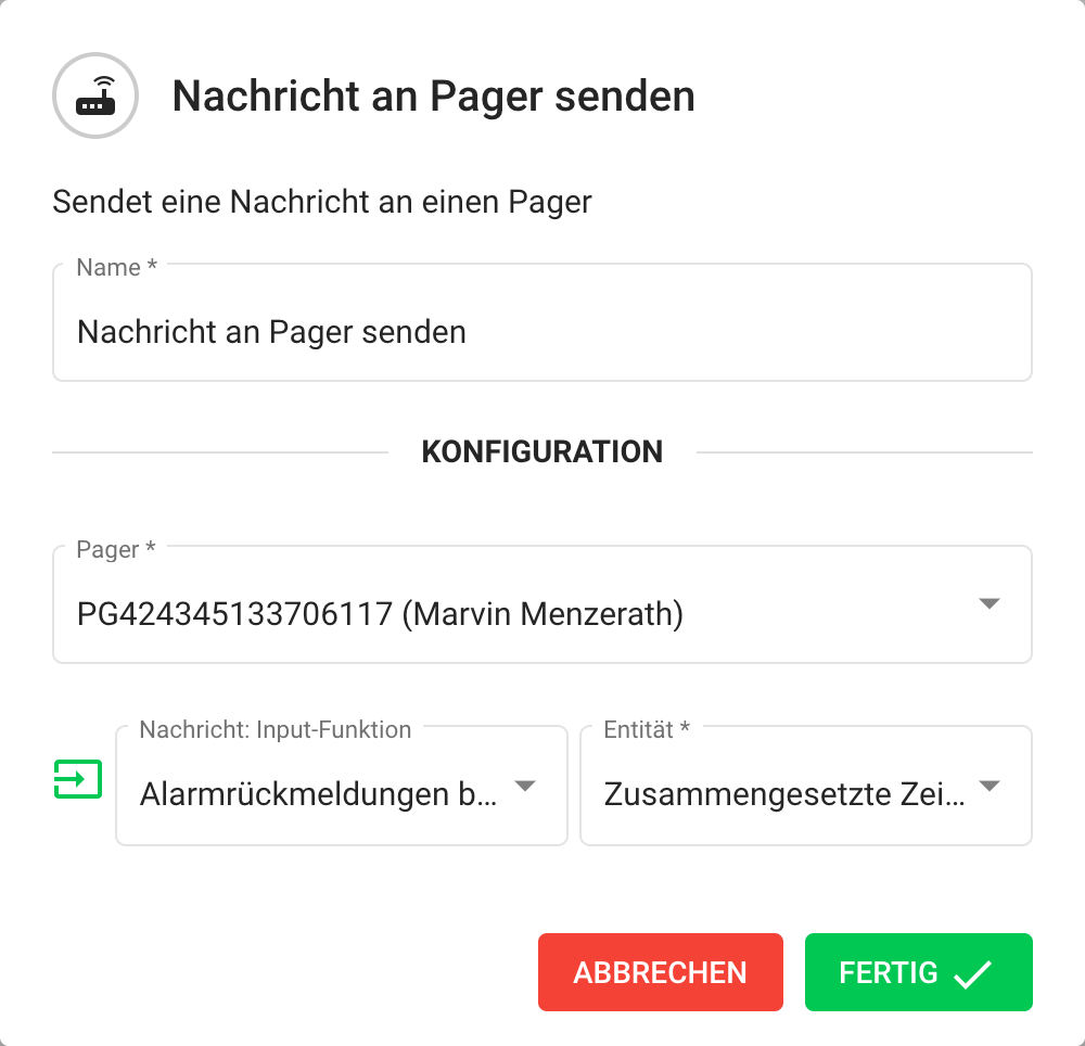 Sie können nun beliebige Textnachrichten, z.B. mit Alarmdetails, Rückmeldungen, DWD-Wetterwarnungen und vielem mehr über die Flows Ihrer Organisationen an einen oder mehrere Pager versenden.