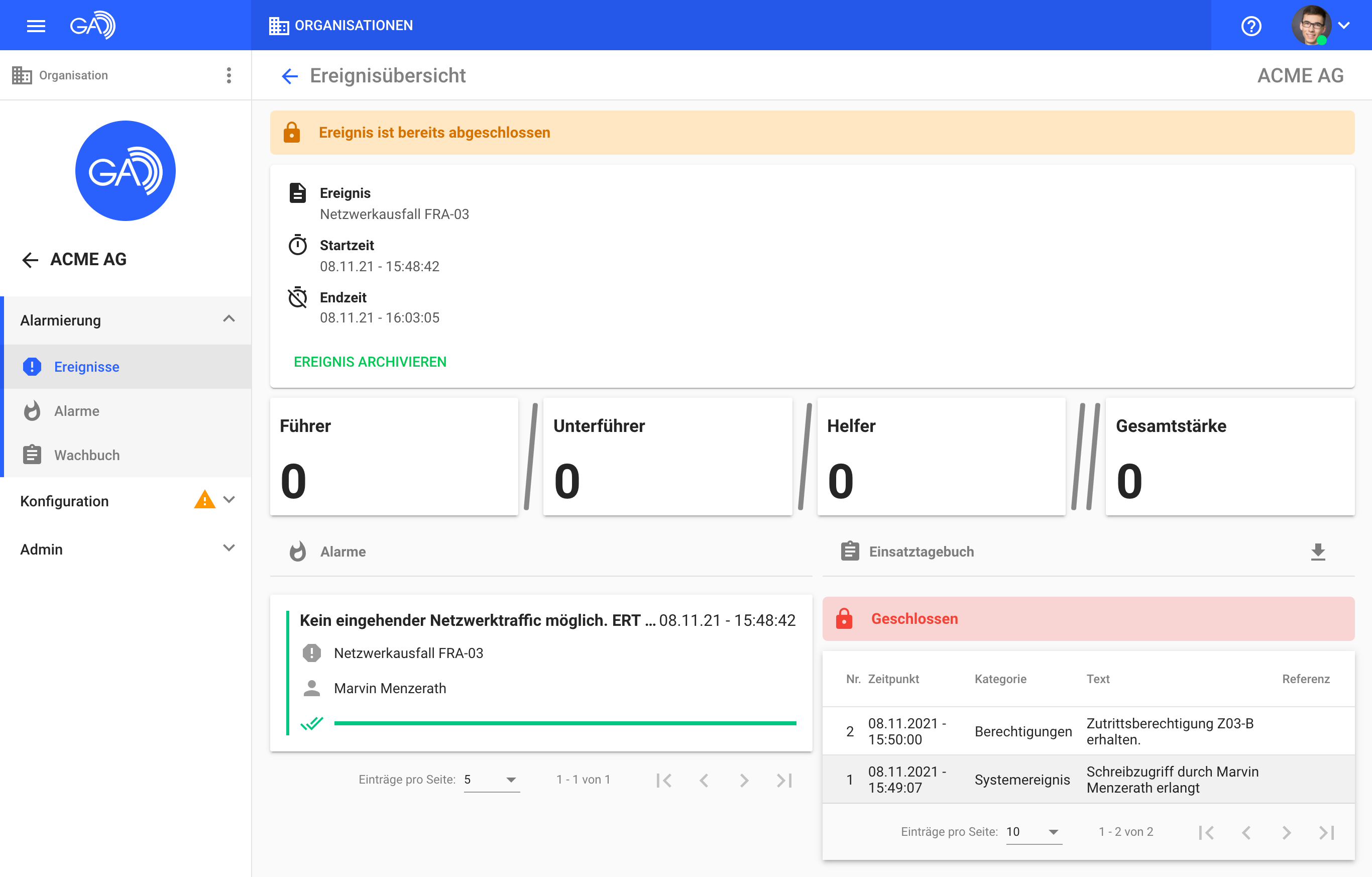 Das Einsatztagebuch eines abgeschlossenen Ereignisses lässt sich nun als PDF-Export herunterladen und somit außerhalb