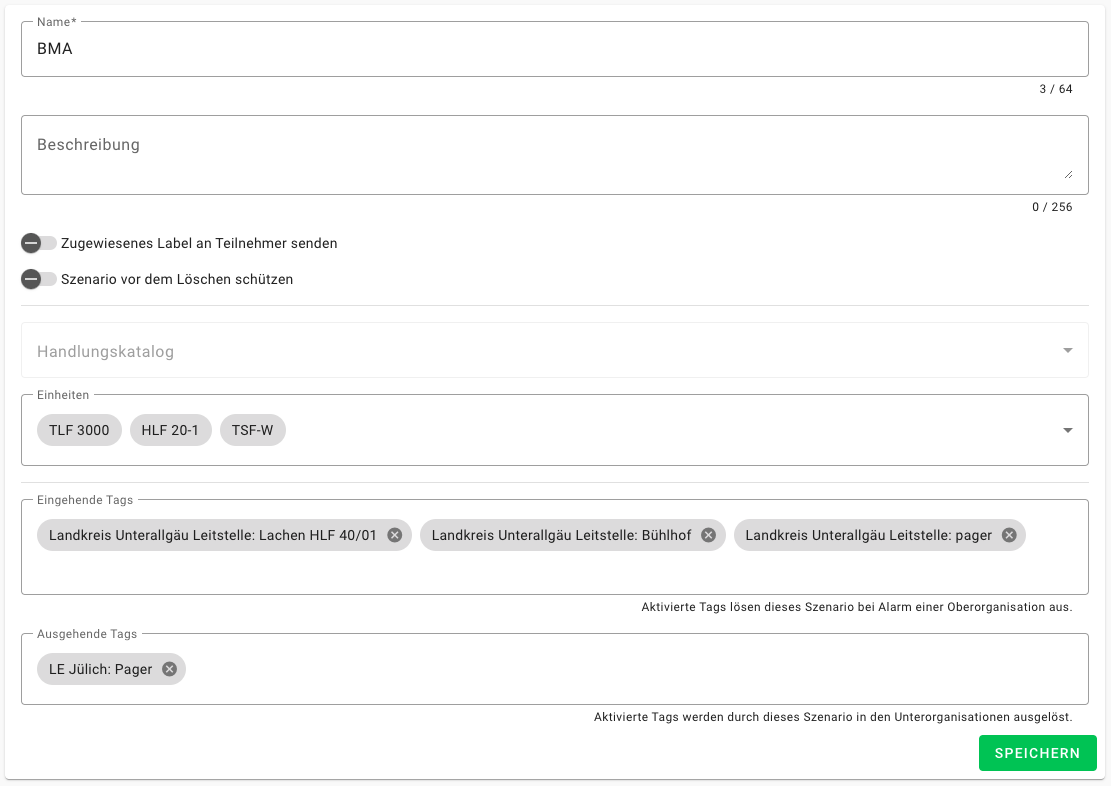 Wir haben zur besseren Administration der Szenarien und Tags die bisherige Mehrfach-Auswahlbox durch eine Suche mit Chips ersetzt. Anwender können nun nicht nur nach Tags suchen und diese zuordnen, sondern sehen auch auf einen Blick, auf welche Tags das Szenario reagiert.