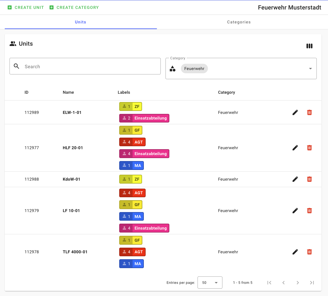 With the new unit categorisation feature, you can now organise your units with ease. Whether you want to group units by type, location or another logic, you can freely define this by creating your own categories. The categories are available wherever you manage or display units, e.g. when creating alarms, alarm templates or scenarios. They are also available as a selection in various monitor panels, e.g. for display on maps or feedback. In the GroupAlarm Cockpit, the mask for quick alerting by units is automatically grouped according to categories, which significantly improves the overview, especially when there are many units.
