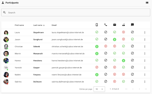 In the participant list, it is now directly visible on which devices an alarm will be sent to a participant. Previously, it was only displayed whether a device availability was enabled by the participant, but not whether it was also enabled in the organization. If a device is disabled for alarming by the organization, a blocked icon is displayed next to the participant for this device. If a device is enabled for alerting on participant level, the availability indicator appears again.